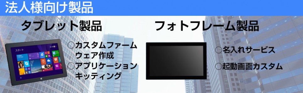 卒業記念や贈答用の企業名・学校名の名入れ対応や、本体カラーや仕様の変更。その他、各用途に合わせた本体のカスタマイズに対応できます。ラインナップは7~21.5インチと幅広い案件に対応可能。